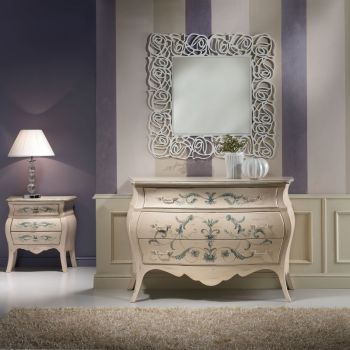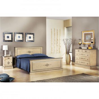Camera matrimoniale con finitura colore avorio antico e profili rosso antico