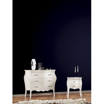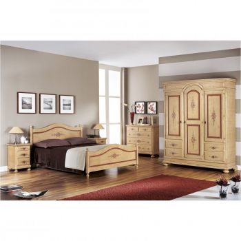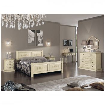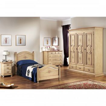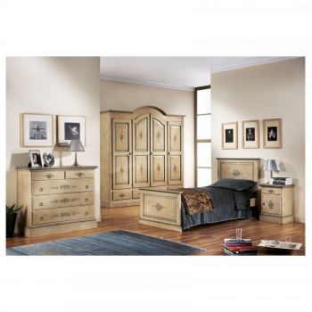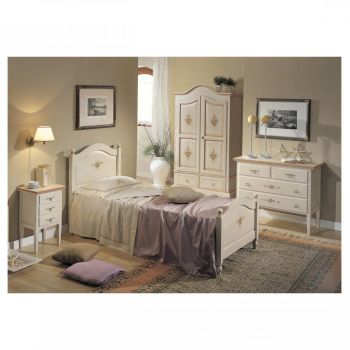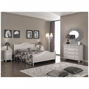 Camera matrimoniale in abete massello con finitura colore bianco spazzolato
