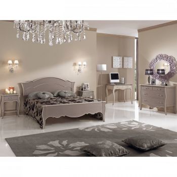 Camera matrimoniale con finitura tortora/grigio antico e profili argento