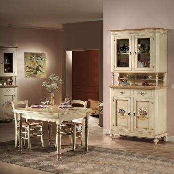 Camera singola con finitura colore avorio antico e profili rosso antico