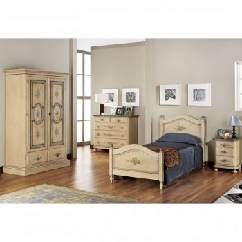 Camera singola con finitura colore avorio antico e profili azzurro antico