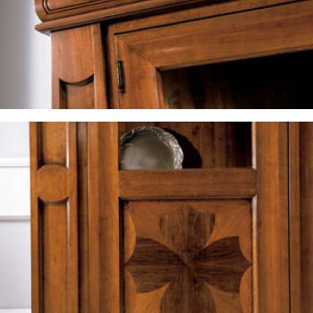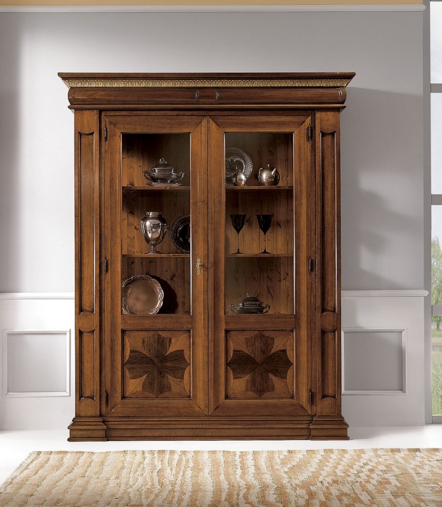Vetrina a 2 porte intarsiata completa di 4 ripiani.