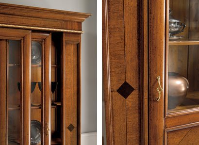 Vetrina a 2 porte scorrevoli intarsiata completa di 4 ripiani.