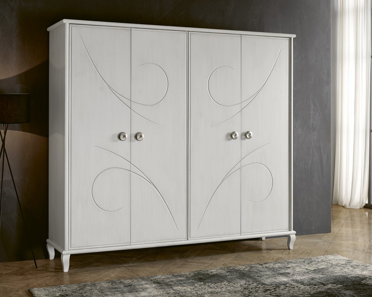 Armadio 4 porte con fresatura in MDF laccato bianco invecchiatp