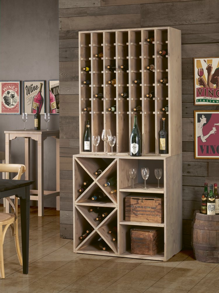 Cantinetta porta bottiglie in abete massello beige