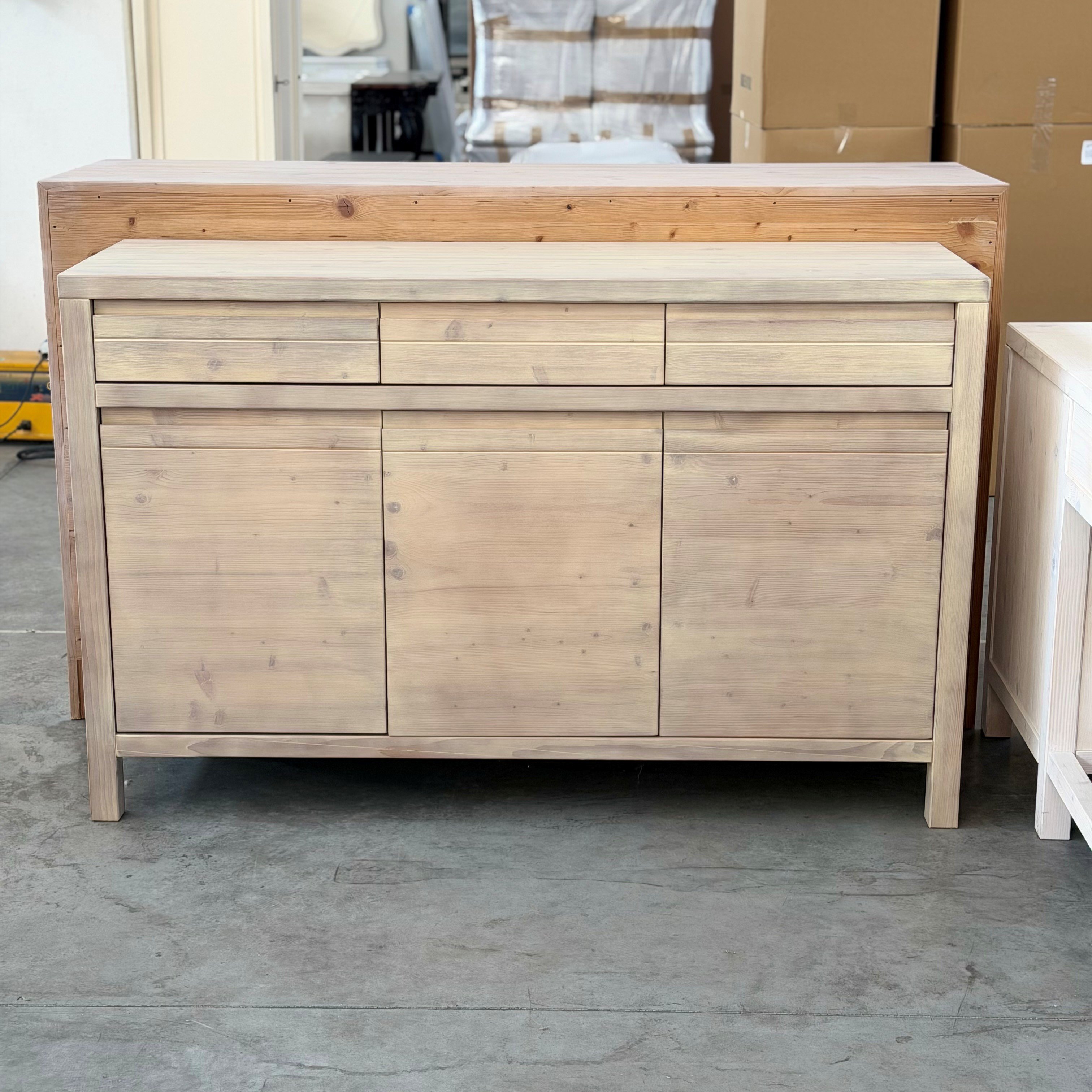 Credenza 3 porte 3 cassetti in abete massello sabbia
