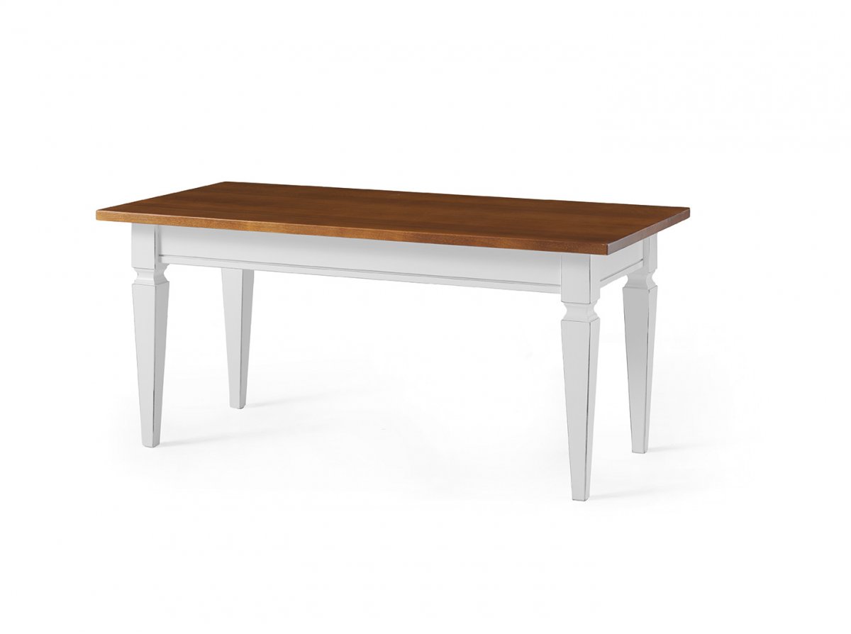 Tavolino rettangolare con piano noce e gambe bianco spigolato